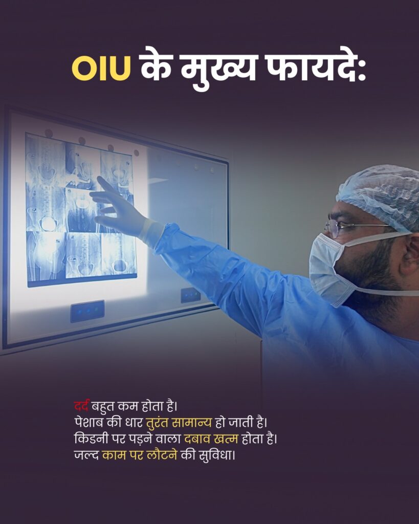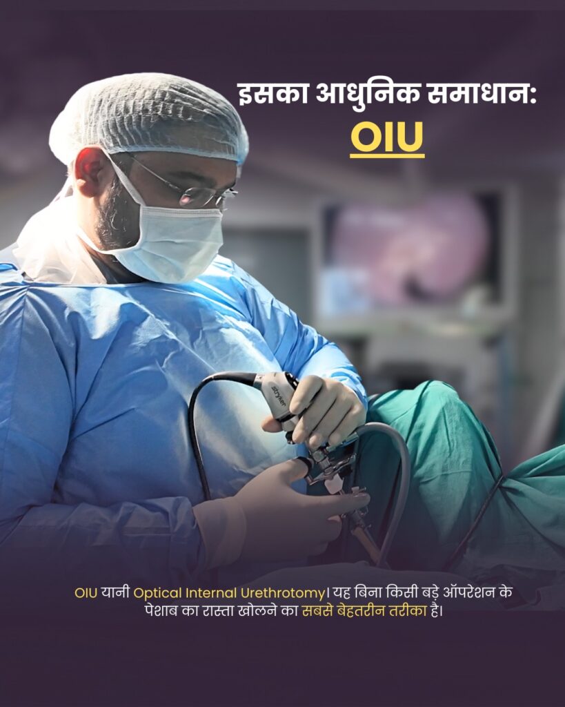 OIU का अर्थ है दूरबीन के माध्यम से पेशाब के रास्ते को अंदर से खोलना। यह प्रक्रिया सुरक्षित और अत्यंत सटीक है।